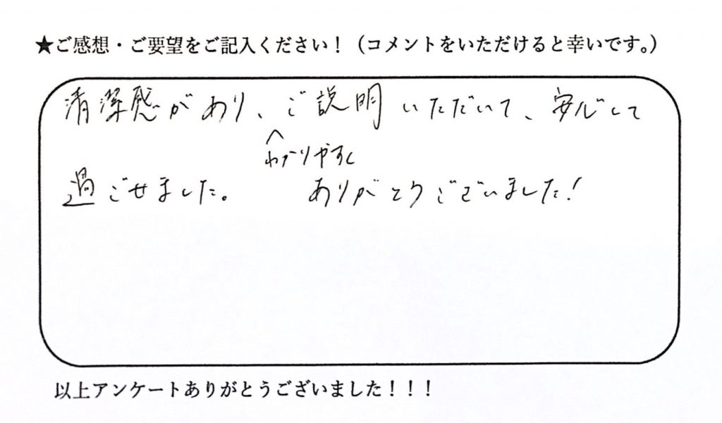 安心して過ごせました。ありがとうございました!