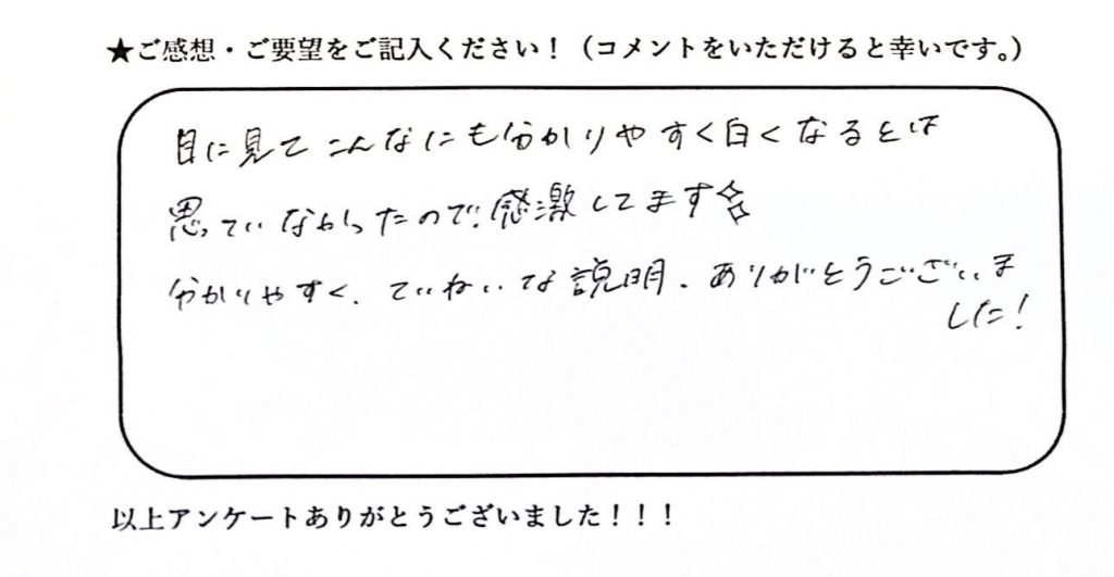 目に見えてこんなにも分かりやすく白くなるとは 思っていなかったので、感激してます✨ 分かりやすく、ていねいな説明、ありがとうございました!